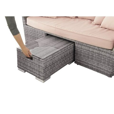 東谷 デイベッドソファ&テーブル 完成品 ベージュ チェア:アルミ ポリエチレン ポリエステル ウレタンフォーム アルミ ポリエチレン 強化ガラス5mm RKC-536