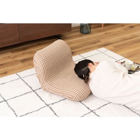 丸いフォルムとチェック柄がかわいいフロアチェア。S字カーブの構造が身体にしっかりフィットし、ゆったりとくつろぐことができます。