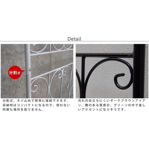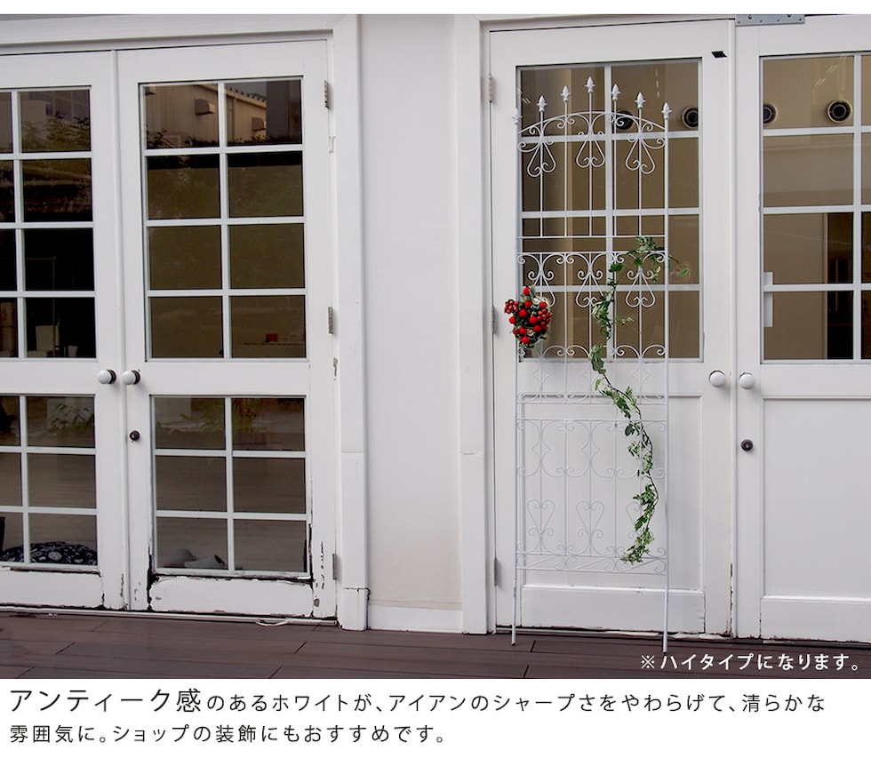 壁に立てかけるだけで瀟洒(しょうしゃ)な存在感があり、蔦をからませればまるでロマンチックな古城の庭!オフシーズンでもお庭を華やかにしてくれます。