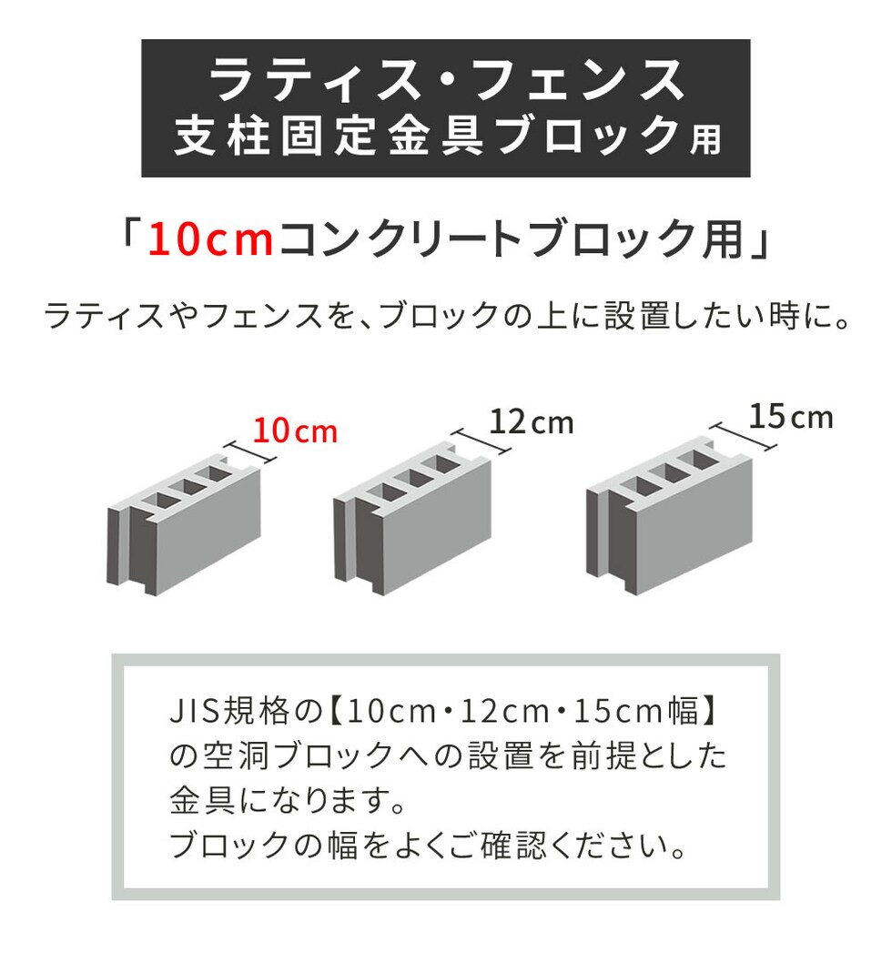 ラティスやフェンスを、10cmブロックの上に設置したい時に。