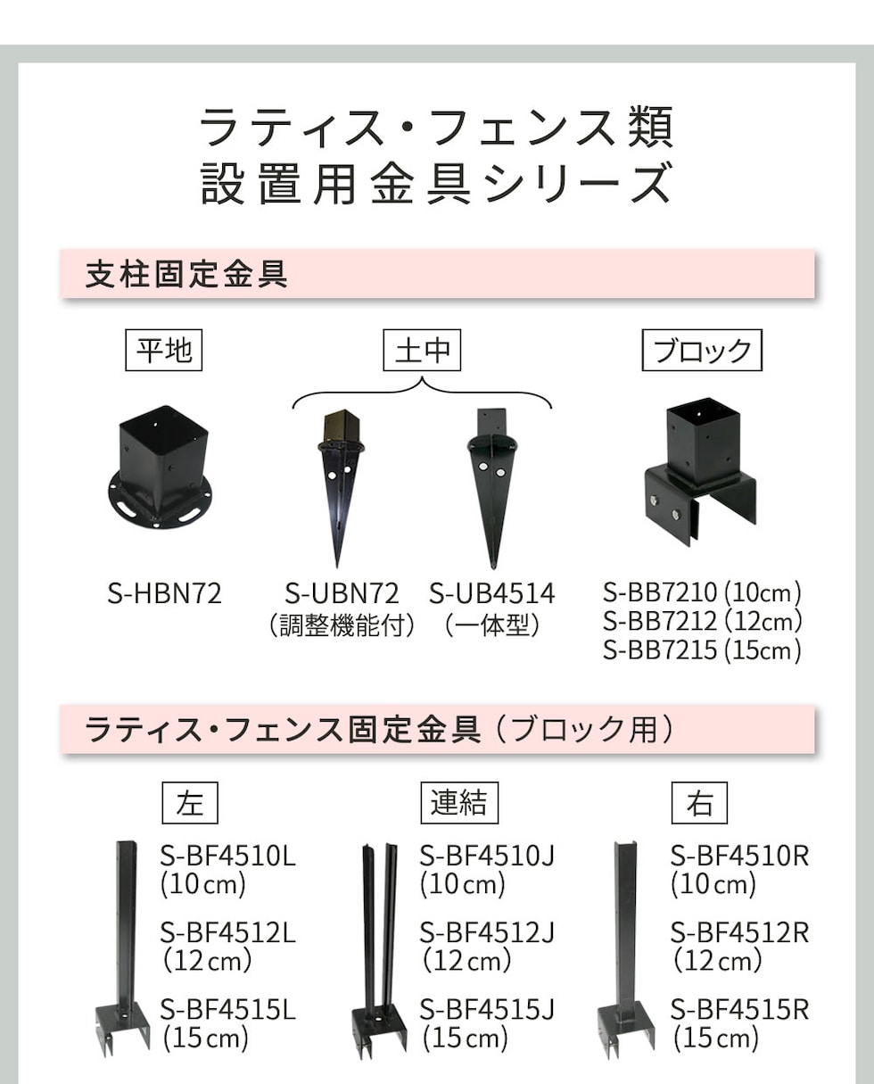 ラティスやフェンスを、12cmブロックの上に設置したい時に。