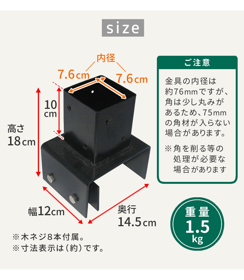 | ■重量(約) | 1.5kg(1個あたり) |