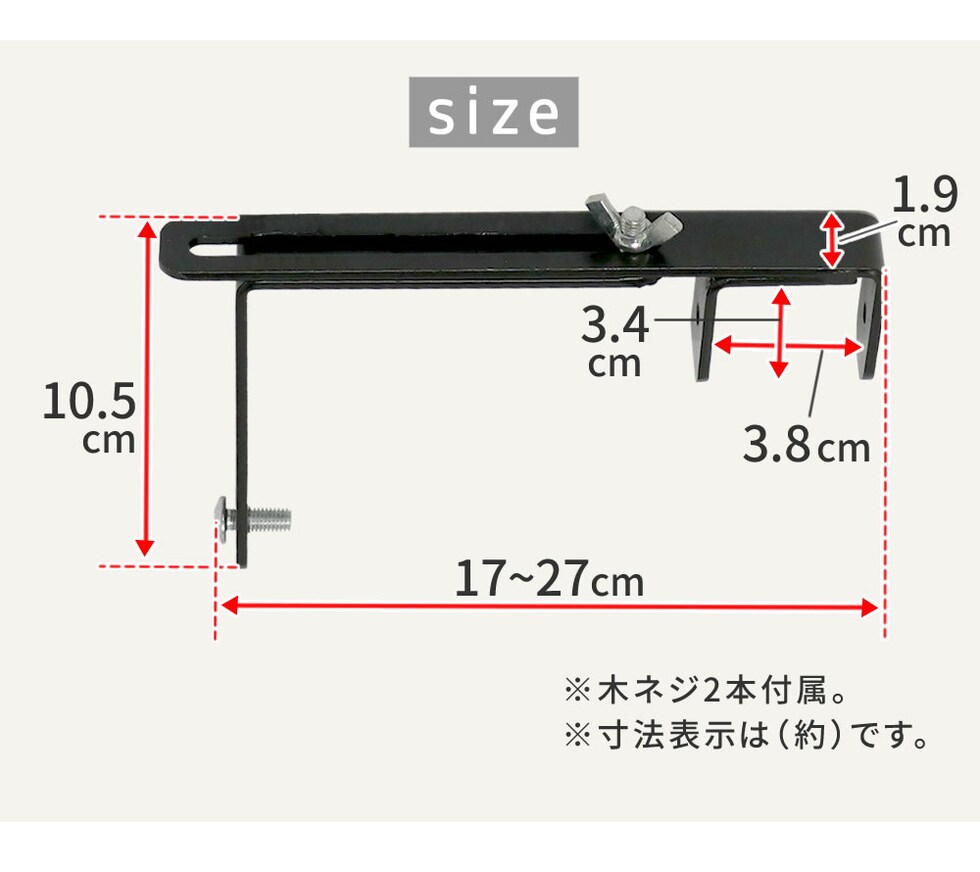 | ■サイズ(約) | 幅(最小170~最大270)×奥行19×高さ105mm |