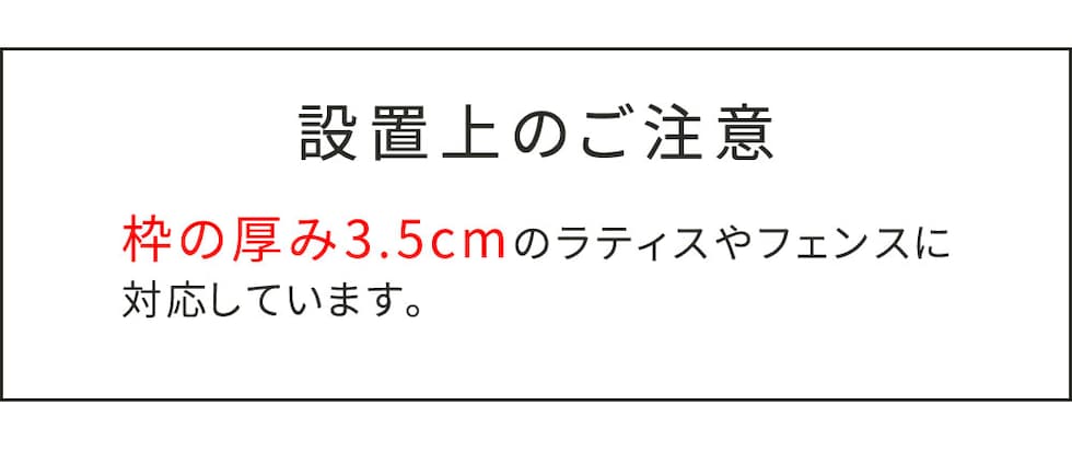 ※枠の厚み3.5cmのラティスやフェンスに対応しています。