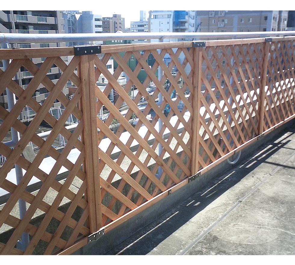 ※お庭やベランダ、店舗、公園等に、ラティスやフェンスを自作できる金具シリーズです。空間を仕切るだけでなく、日よけや、ディスプレイのベースとしても活用でき、DIY初心者さんでも簡単設置が可能。まるで作り付けのようなフェンスが設置でき、見映えのするエクステリアに。自宅に癒しの空間を。