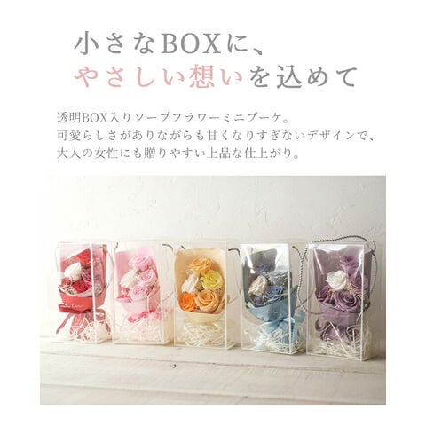 ソープフラワー ブーケ 花束 プレゼント 花 5色 クリアボックス付き スタンダードソープフラワーブーケ ソープブーケ ミニブーケ 枯れない花 入学式 卒業式 誕生日 母の日 退職祝い フラワーギフト 可愛い バラ レッド ピンク ブルー パープル イエロー 送料無料 SF-5577