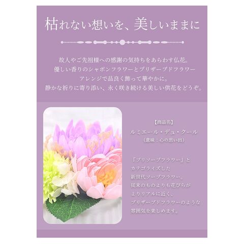 ソープフラワー 仏花 お供え花 シャボンフラワー プリソープフラワー プリザーブドフラワー 石鹸素材 枯れないお花 仏壇用 ペットお供え ルミエール・デュ・クール 心の思い出 お供え お悔やみ 供花 お悔み 仏壇 仏前 お盆 お彼岸 法事 故人 パープル 送料無料 SF-AM25LCW