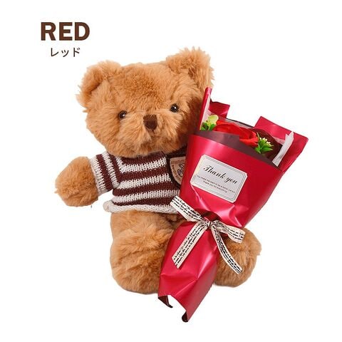 ソープフラワー くま テディベア プレゼント 花 ぬいぐるみ ラウルベア&ブーケ クリアケース入り クリスマス 入学式 卒業式 ブーケ 花束 誕生日 母の日 成人式 結婚 退職 発表会 出産 お供え おしゃれ 可愛い ホワイトデー レッド オレンジ ピンク 送料無料 SF-FDC97
