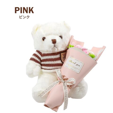 可愛らしいラウルベアと、ほのかに香るソープフラワーを