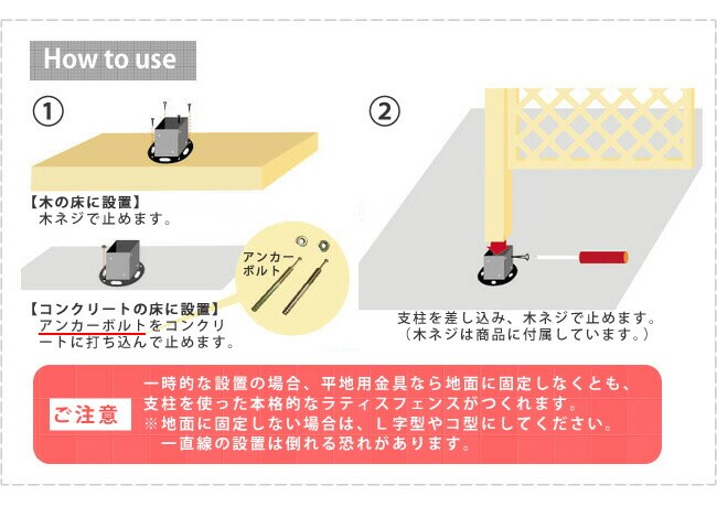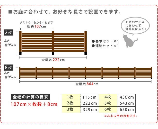 | ■サイズ | フェンス:幅 約1070×奥行 約27 高さ 約780mm ポール:幅 約74×奥行 約74×高さ 約950mm 平地用埋め込み金具:幅 約140×奥行 約140×高さ 約100mm |