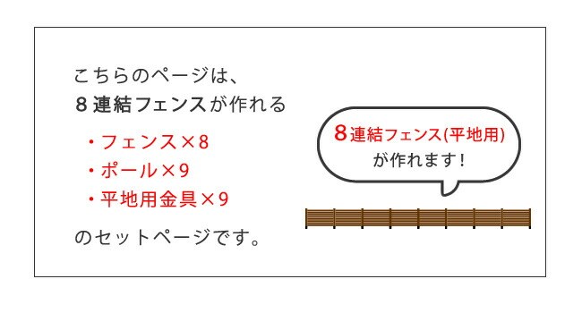 | ■商品名 | ボーダーフェンス スプレッド(8連結セット/平地用) ※フェンス×8、ポール×9、平地用金具×9 |