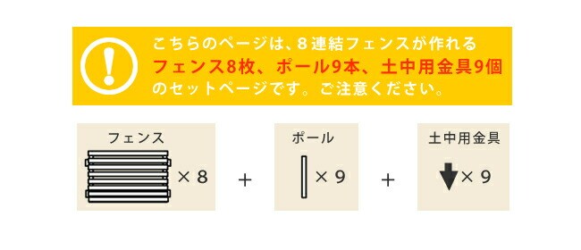 | ■商品名 | ボーダーフェンス スプレッド(8連結セット/土中用) ※フェンス×8、ポール×9、土中用金具×9 |