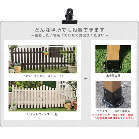 | ■商品名 | ピケットフェンス ストレート連結セット(平地用) ・フェンス…1枚 ・ポール…1本 ・平地用金具…1個 |