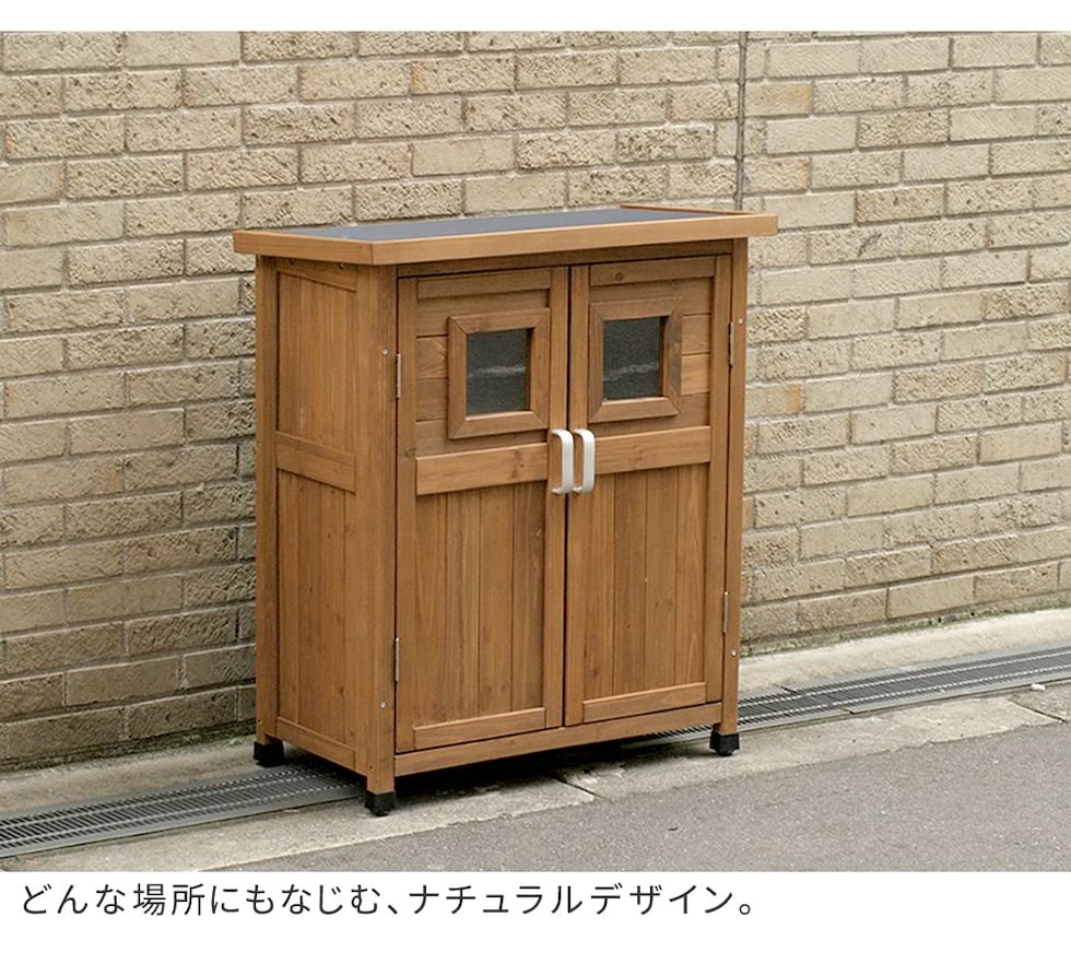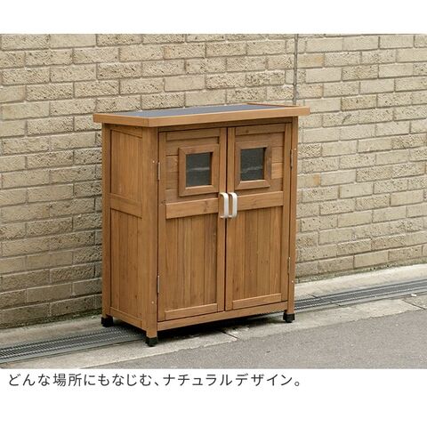 ベランダやバルコニーなど、せまい場所にも違和感なく馴染む、ナチュラルな天然木製の薄型収納庫です。
