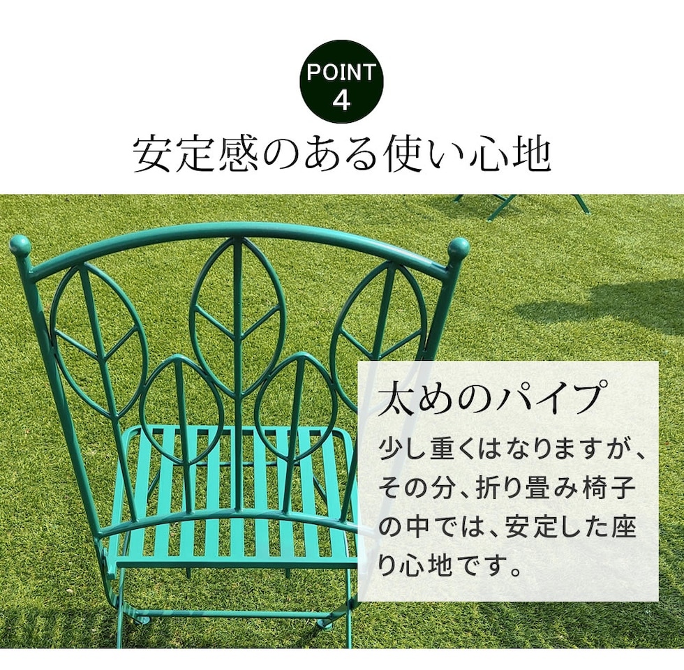 椅子は折りたたみ式ですが、風が強い日も安定してお使い頂けるよう、重みやバランスを工夫。