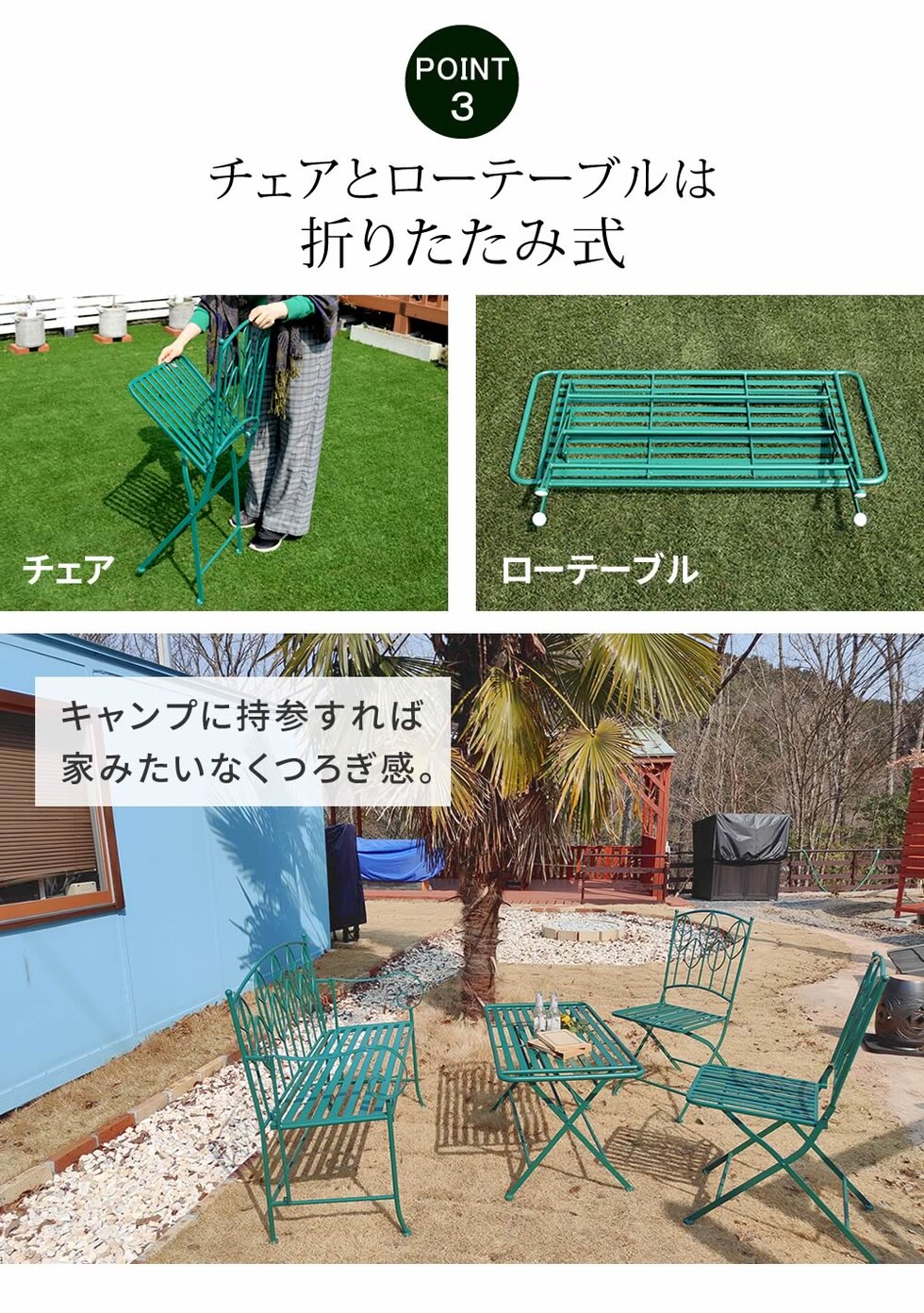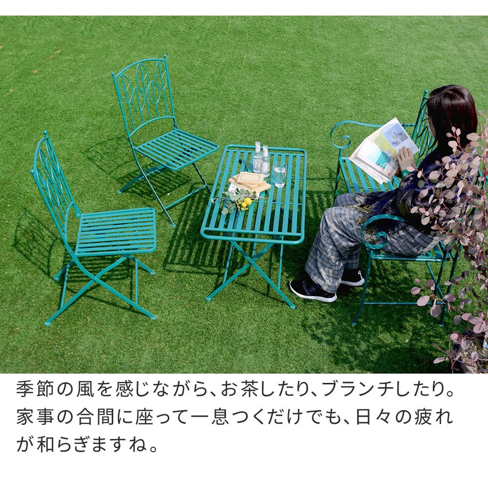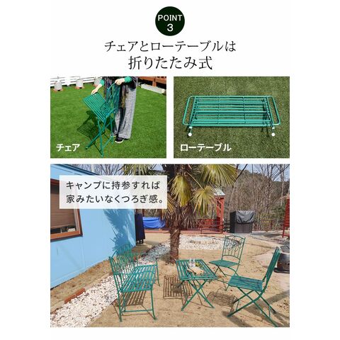 ガーデンセットでは珍しいローテーブルは、ドライバー不要で折りたためるので、
