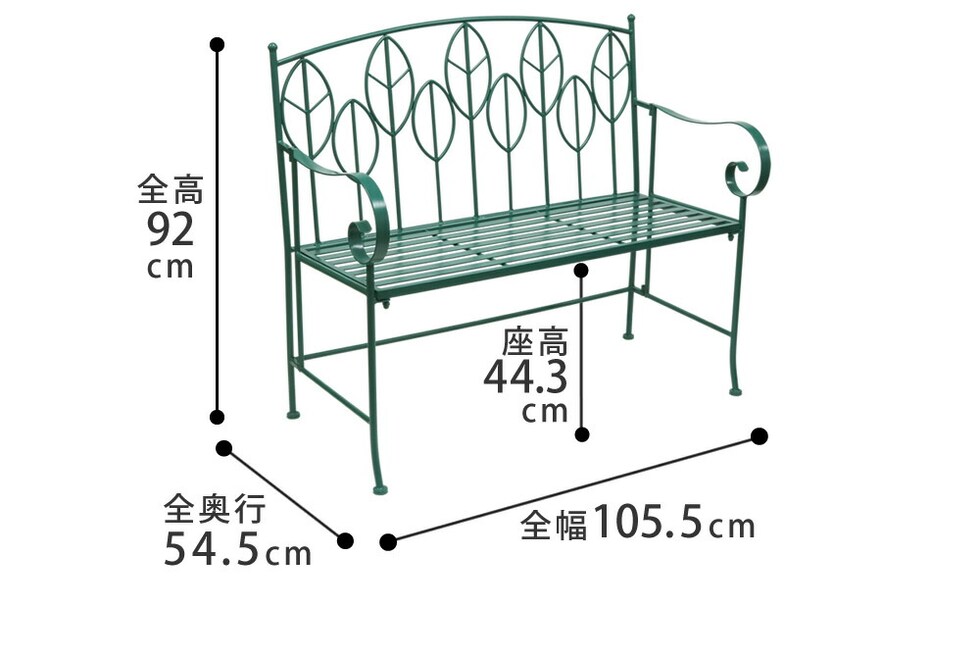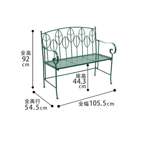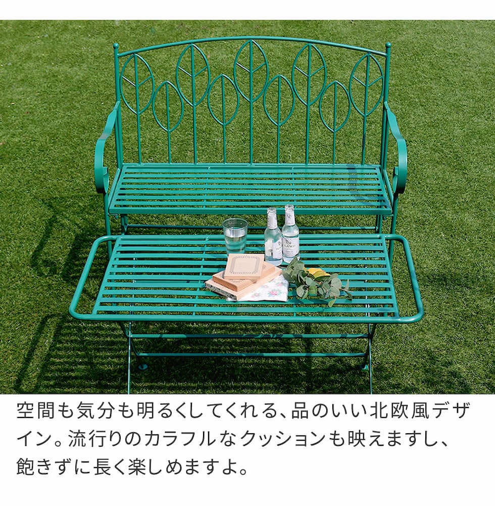 ベンチは木陰に気軽に置きやすい2人掛けサイズ。