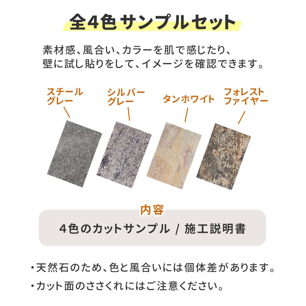住まいスタイル 「DIY Stone」 DIYで貼れる天然石タイル サンプルセット STN-SM<br>カットサンプル 色見本 壁材 壁 ウォール 床 石 タイル ストーンスタイル パネル スタイル 壁紙 リフォーム リノベ リビング