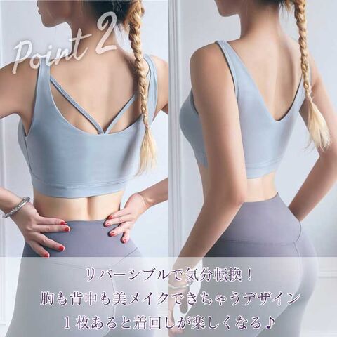 ヨガ ヨガウェア ブラトップ スポーツブラ トップス カップ付き 揺れない ノンワイヤー リバーシブル 背中美人 背中デザイン ショートトップ ランニング マラソン 美背中メイク デザイン ダンス SW422T