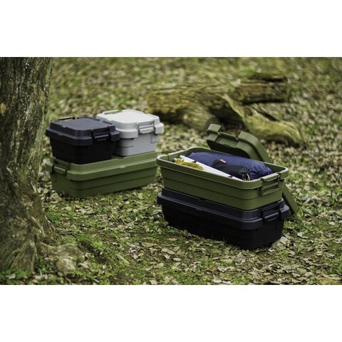 検索キーワード:トランクカーゴ スタッキング 70L 収納 ロータイプ アウトドア キャンプ バーベキュー カーキ ブラック グレー 座れる 簡易椅子 ベルトガイド フタ 積み重ね