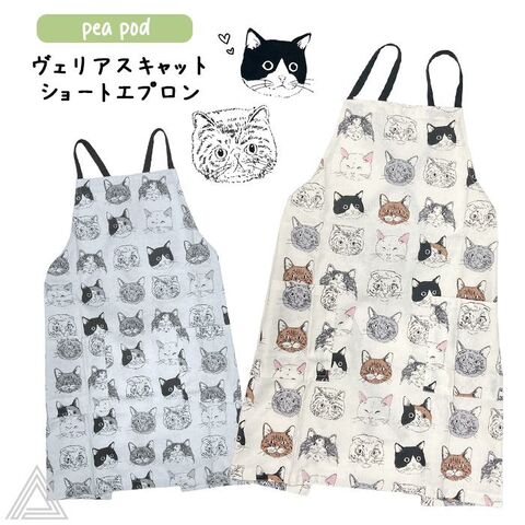 猫 キャット エプロン ヴェリアスキャットショートエプロン ショート丈エプロン 75cm かわいい おしゃれ 綿100% コットン100% 家事 保育士 レディース カジュアル 女性 オフィス 誕生日 プレゼント ギフト 母の日 pea pod アイボリーグレー TK031G