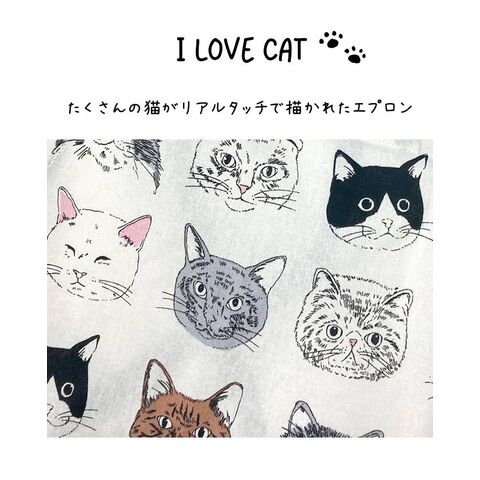 たくさんの猫がリアルタッチで描かれたエプロン♪