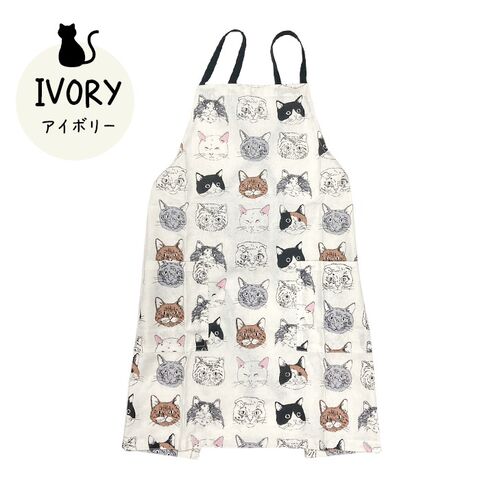 #エプロン #ショート丈エプロン #75cm #猫 #キャット #かわいい #おしゃれ #綿100% #コットン100% #家事 #保育士 #レディース #カジュアル #女性 #オフィス #誕生日 #プレゼント #ギフト #母の日 #アイボリー #グレー