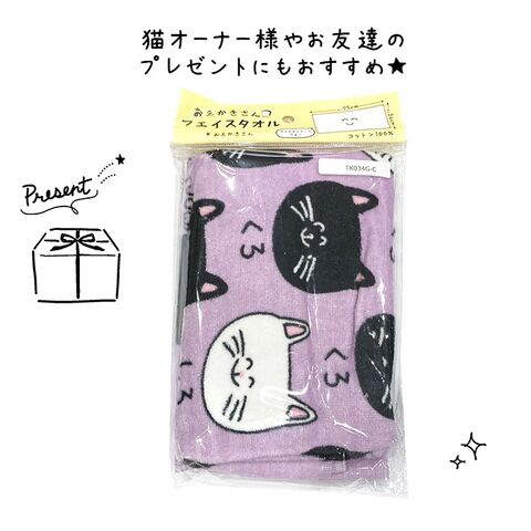 #送料無料 #おえかきさん #コットン100% #フェイスタオル #くろねこさんとしろねこさん #パープル #紫 #綿100% #スポーツタオル #手拭きタオル #ボディタオル #汗拭きタオル #プレゼント #ギフト #黒猫 #白猫 #猫 ねこ #HO-41-443 #TK034G-C