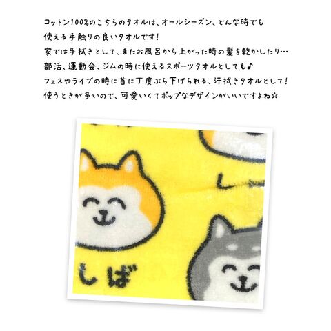 #送料無料 #おえかきさん #コットン100% #フェイスタオル #しばいぬさん #イエロー #綿100% #スポーツタオル #手拭きタオル #ボディタオル #汗拭きタオル #プレゼント #ギフト #柴犬 #犬 #HO-41-466 #TK034G-D