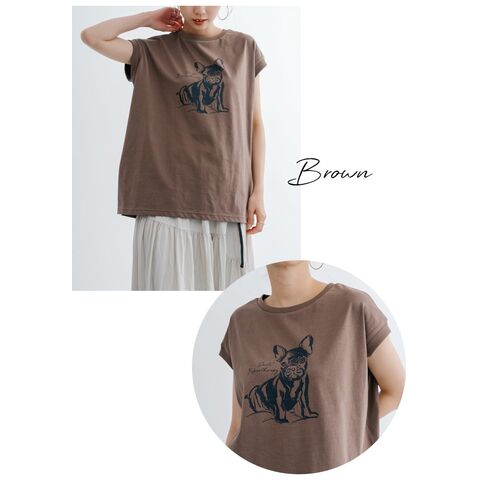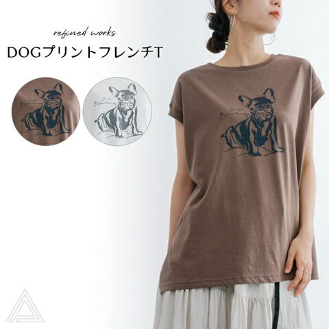【売り尽くし】refinedworks リファインドワークス DOGプリントフレンチT フレンチブルドック フレンチTシャツ ノースリーブ 犬 フレンチブルドッグ フレブル ブヒ 犬グッズ プリントTシャツ レディース 女性用 TK038G
