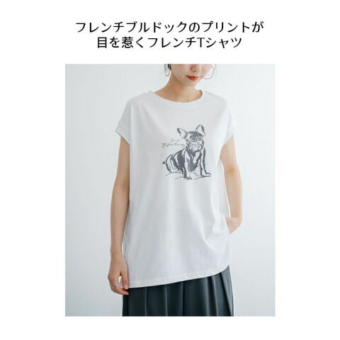 フレンチブルドックのプリントが目を惹くフレンチTシャツ。