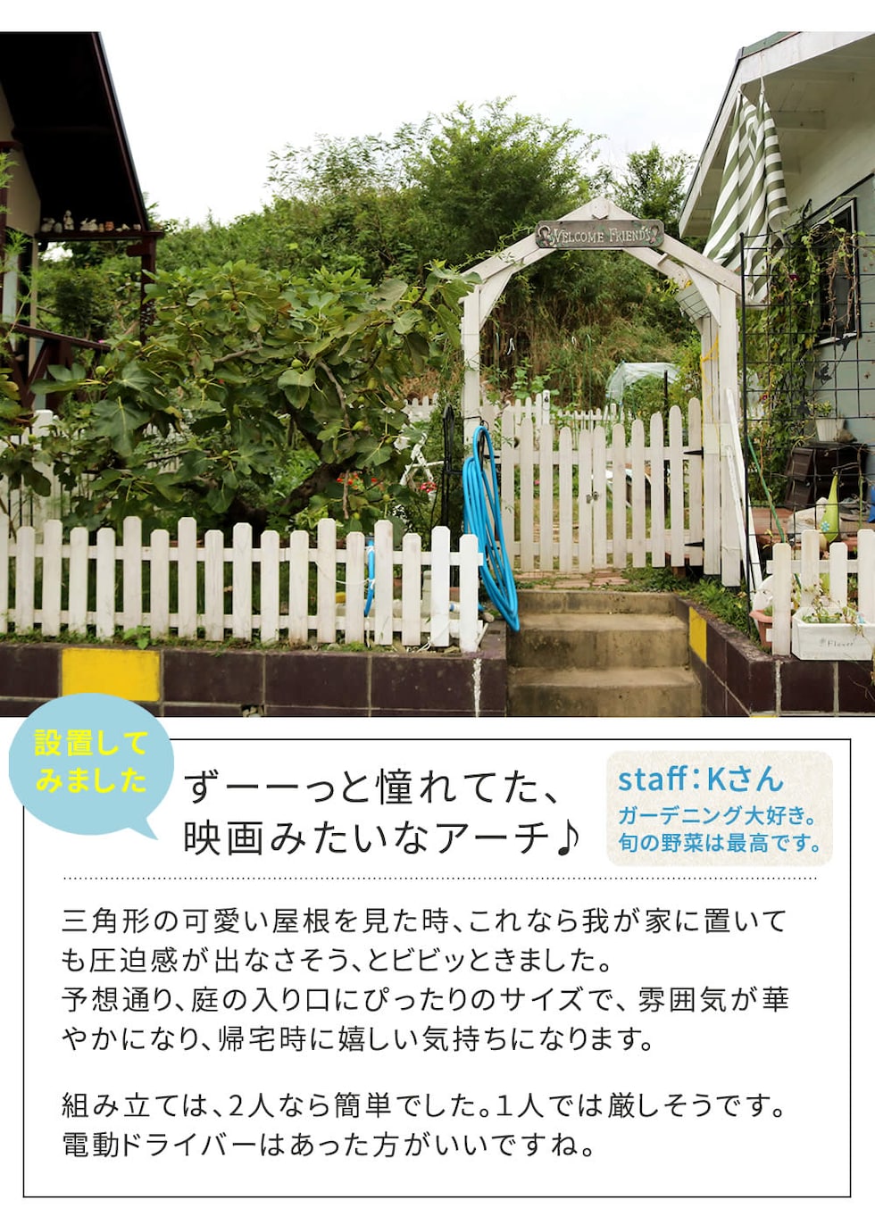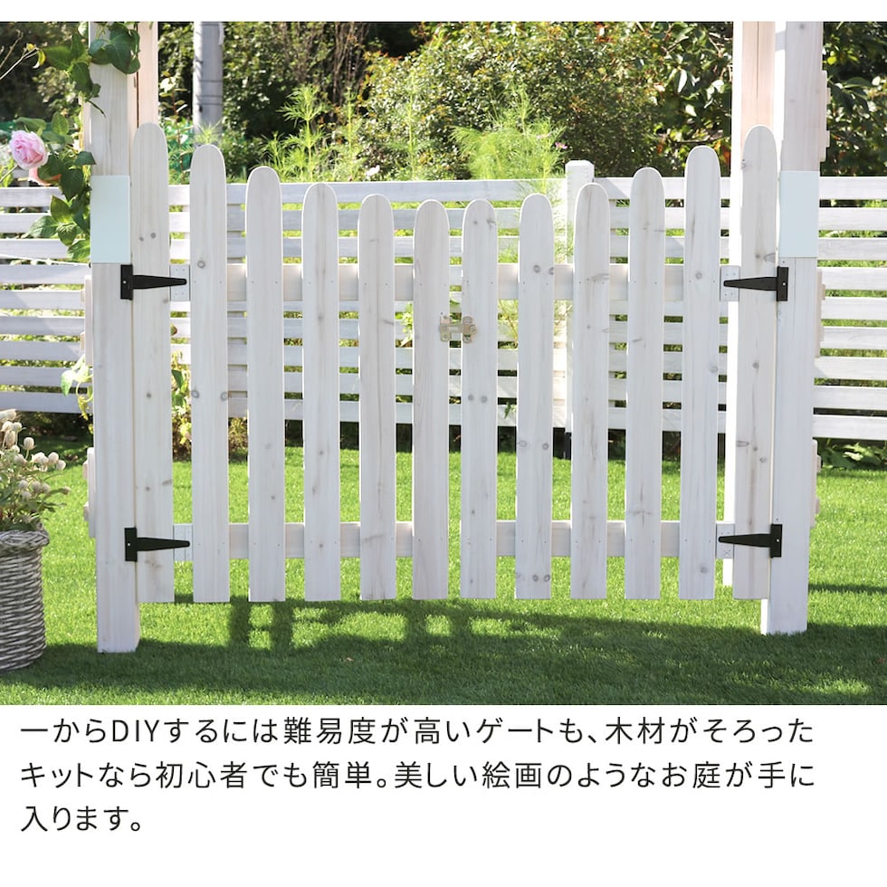 一からDIYするには難易度が高いゲート付アーチも、木材がそろったキットなら初心者でも簡単。