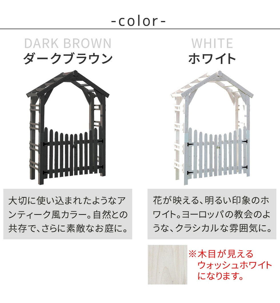 住まいスタイル 天然木製三角アーチ ゲートセット 「WOOD CHURCH」 (ウッドチャーチ) アーチとゲートのセット アーチ 門 ゲート 木製 diy キット 扉 両開き 外開き 観音開き 庭 入口 ホワイト ダークブラウン おしゃれ 北欧 ガーデンファニチャー 送料無料 組立式