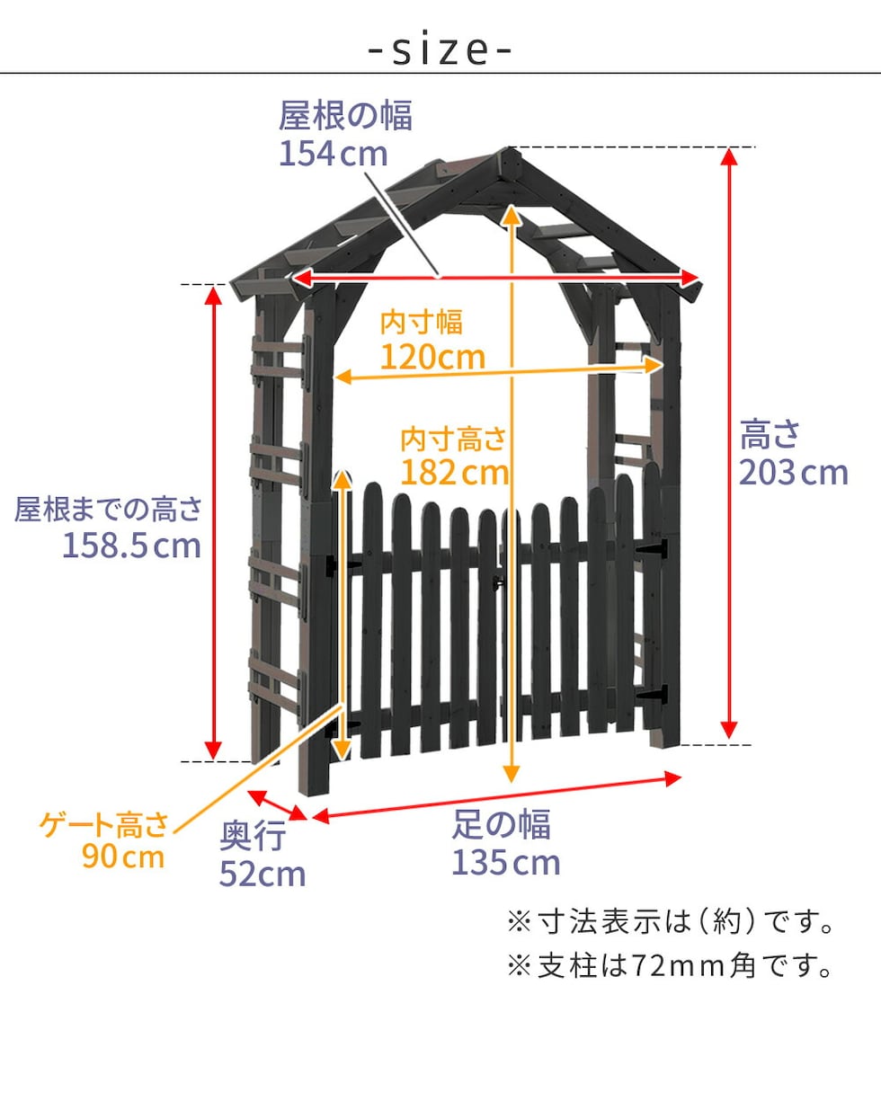 | ■サイズ(約) | アーチ:幅1540×奥行520×高さ2030mm ゲート:幅1200×奥行15×高900mm |