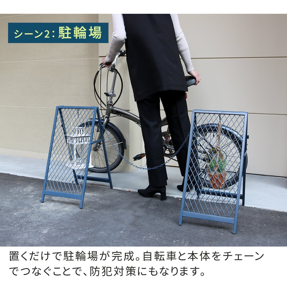 置くだけで駐輪場が完成。自転車とチェーンでつなぐことで、防犯対策にもなります。