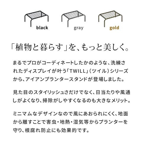 まるでプロがコーディネートしたかのような洗練されたディスレイが叶う「TWILL」(ツイル)シリーズから、アイアンプランタースタンドが登場しました。