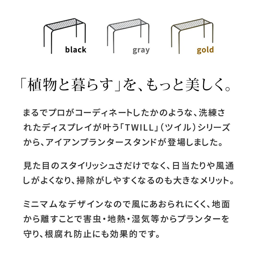 まるでプロがコーディネートしたかのような洗練されたディスレイが叶う「TWILL」(ツイル)シリーズから、アイアンプランタースタンドが登場しました。