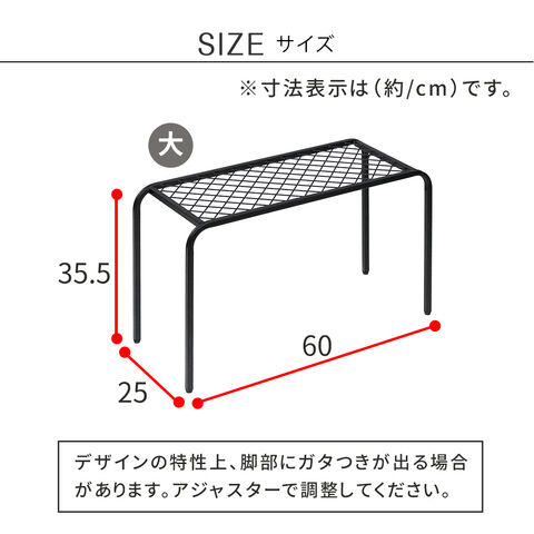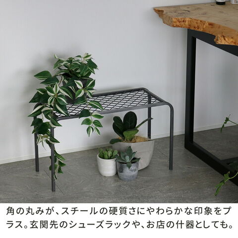 角の丸みがスチールの硬質さにやわらかな印象をプラス。玄関先のシューズラックや、お店の什器としても。