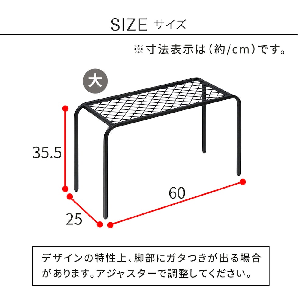 | 全サイズ共通:奥行25cm | |