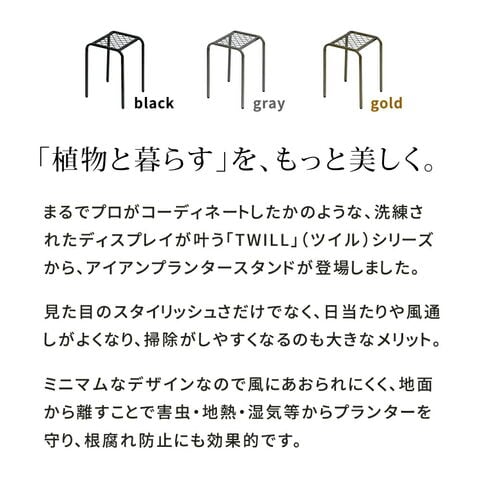 まるでプロがコーディネートしたかのような洗練されたディスレイが叶う「TWILL」(ツイル)シリーズから、アイアンプランタースタンドが登場しました。
