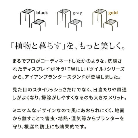 まるでプロがコーディネートしたかのような洗練されたディスレイが叶う「TWILL」(ツイル)シリーズから、アイアンプランタースタンドが登場しました。