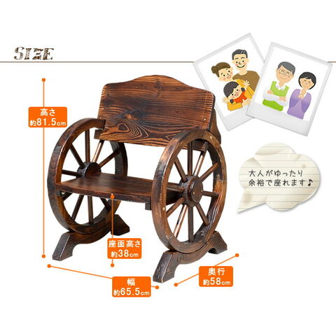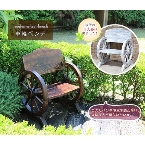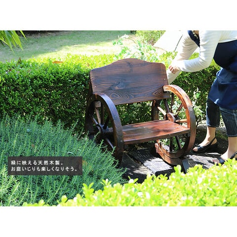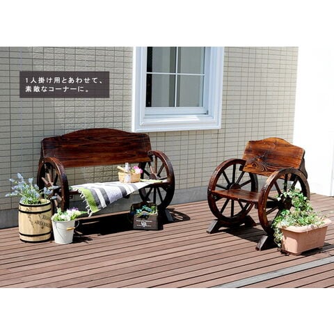 ウッディな車輪が目を惹く、存在感たっぷりのガーデンベンチ