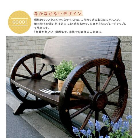 | ■サイズ | 【車輪ベンチ大】 本体:幅 約1100×奥行 約585×高さ 約830mm 座面高さ:約385mm 【車輪ベンチ小】 本体:幅 約655×奥行 約580×高さ 約815mm 座面高さ:約385mm 【焼杉テーブル】 本体:幅 約1100×奥行 約550×高さ 約480mm 座面高さ:約480mm |