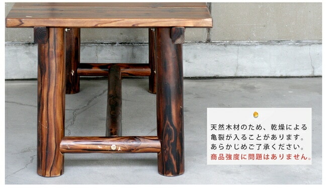 住まいスタイル 車輪ベンチ&焼杉テーブル3点セット(ベンチ大+小+テーブル)<br>【送料無料 簡単組立 天然木 木製 ガーデンテーブル 丸太 車輪ベンチシリーズ 庭 公園 什器 車輪 ログ カントリー 焼杉 古木調 テーブル チェア ベンチ 縁台 和風 モダン】