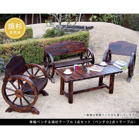 | ■商品名 | 車輪ベンチ&焼杉テーブル3点セット (ベンチ小×2 テーブル×1) |