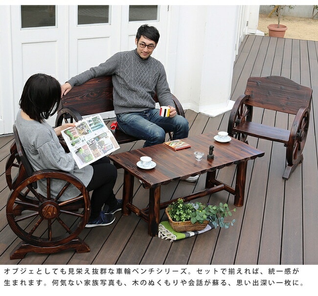 | ■商品名 | 車輪ベンチ&焼杉テーブル3点セット (ベンチ小×2 テーブル×1) |
