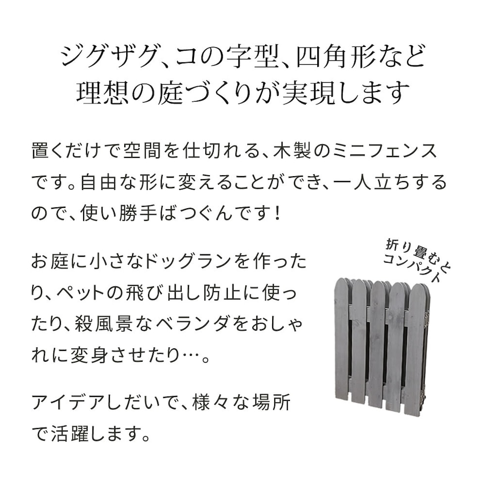 置くだけで空間を仕切れる木製フェンス。自由な形に変えることができ、自立するので、使い勝手抜群です。