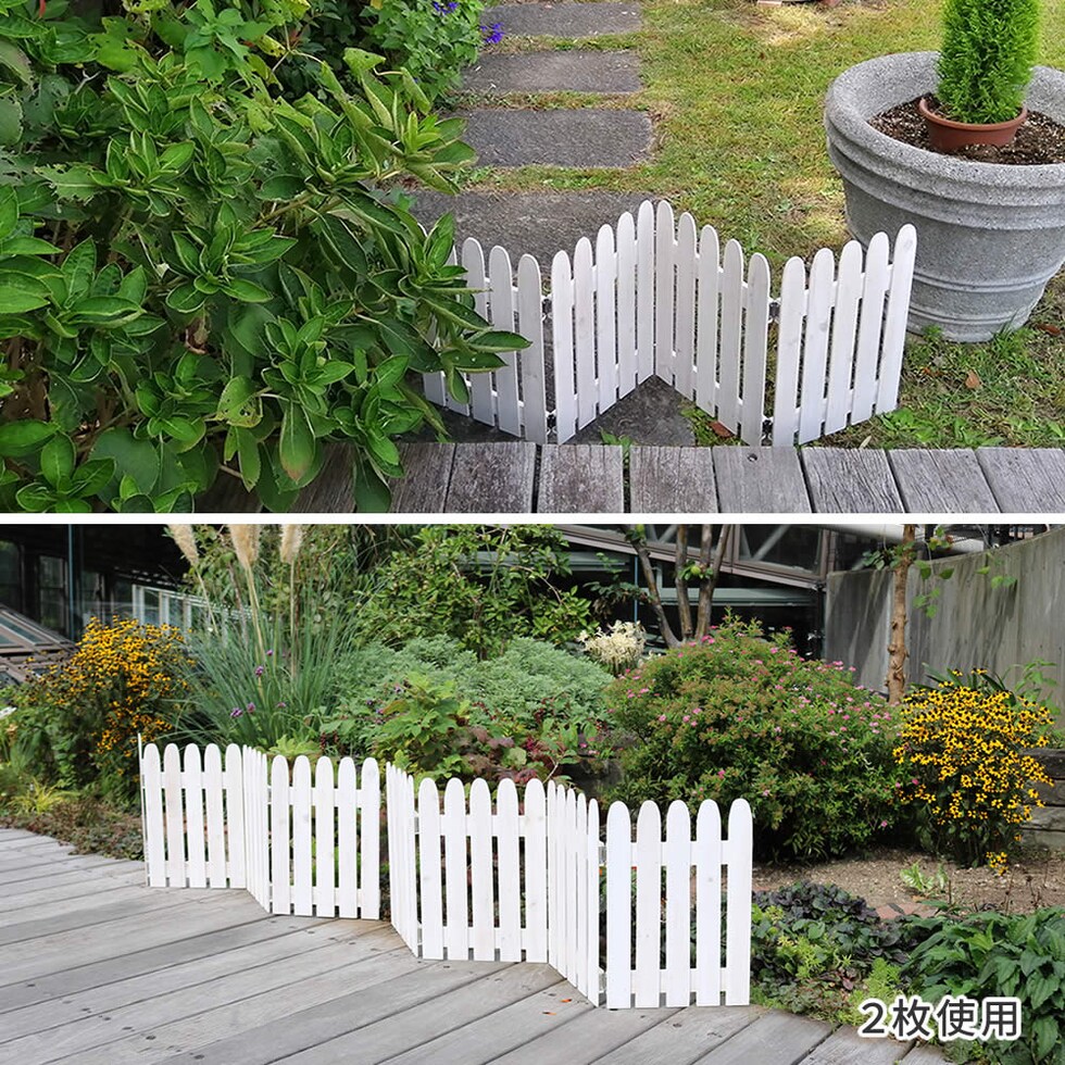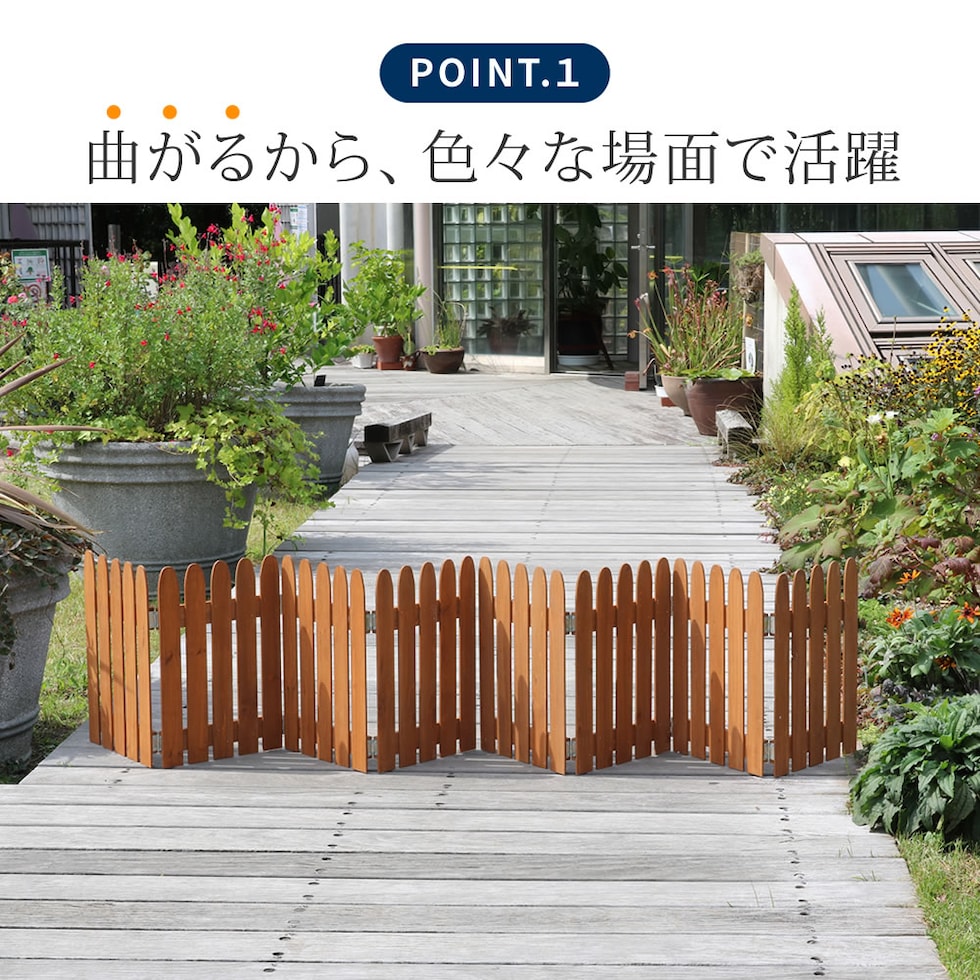 置くだけで空間を仕切れる木製フェンス。自由な形に変えることができ、自立するので、使い勝手抜群です。