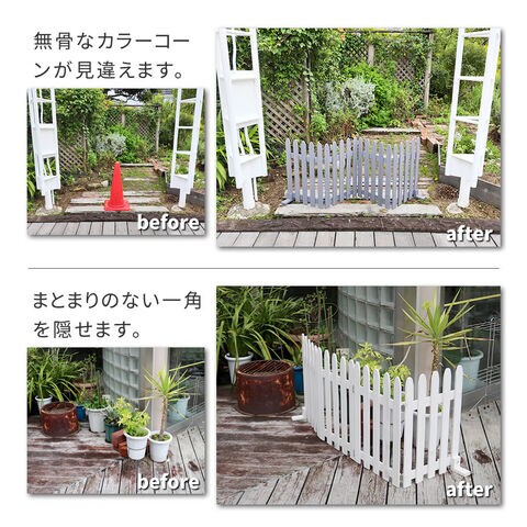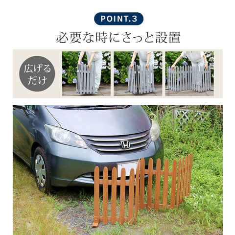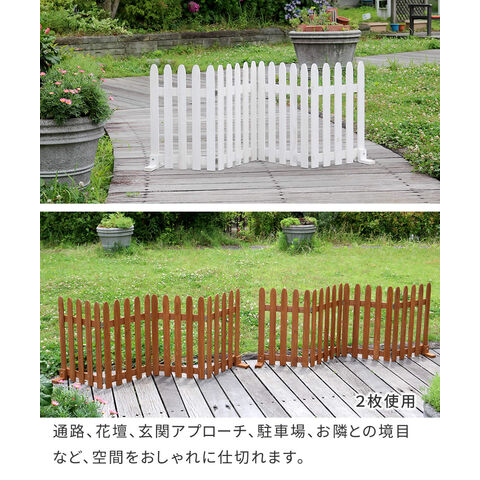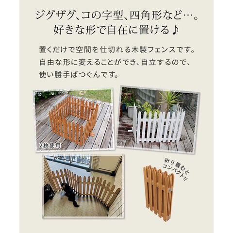 置くだけで空間を仕切れる木製フェンス。自由な形に変えることができ、自立するので、使い勝手抜群です。