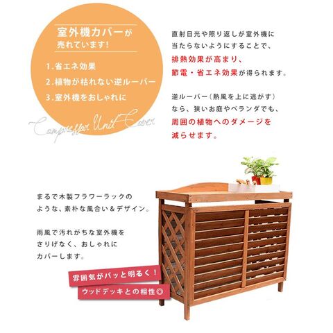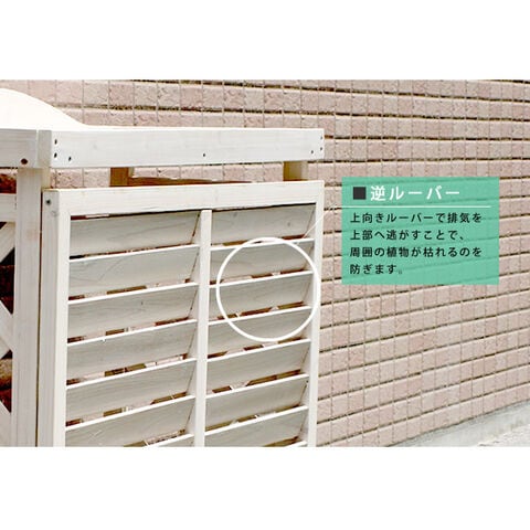 デッドスペースの有効活用にもなります。逆ルーバータイプなら、周囲の植物を室外機の熱風から守ります。